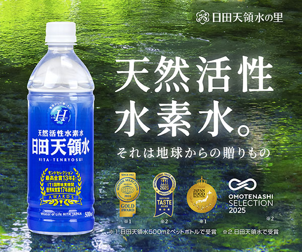 九州大学での研究を経て、「天然活性水素水」として商品化されました。 日田天領水は、大分県日田市の地下深層から汲み上げられる天然ミネラルウォーターです。