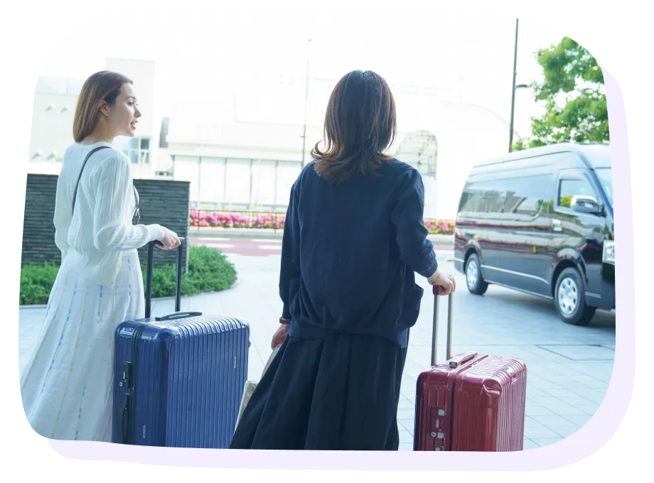 スーツケースなどの大きな荷物があっても、車で移動できるため移動の負担が少なくなります。 - 事前予約でスムーズな移動