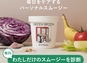 公式サイトで詳細を見るパーソナルスムージー【GREEN SPOON】とはGREEN SPOON(グリーンスプーン)は、株式会社Greenspoonが提供するパーソナルスムージーサービスです。野菜やフル...