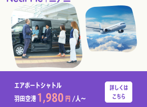 公式サイトで詳細を見る自宅と空港をつなぐ便利な移動サービス「NearMe エアポートシャトル」「NearMe(ニアミー)」のエアポートシャトルは、自宅やホテルと空港をドアツードアでつなぐ新しい移動サー...